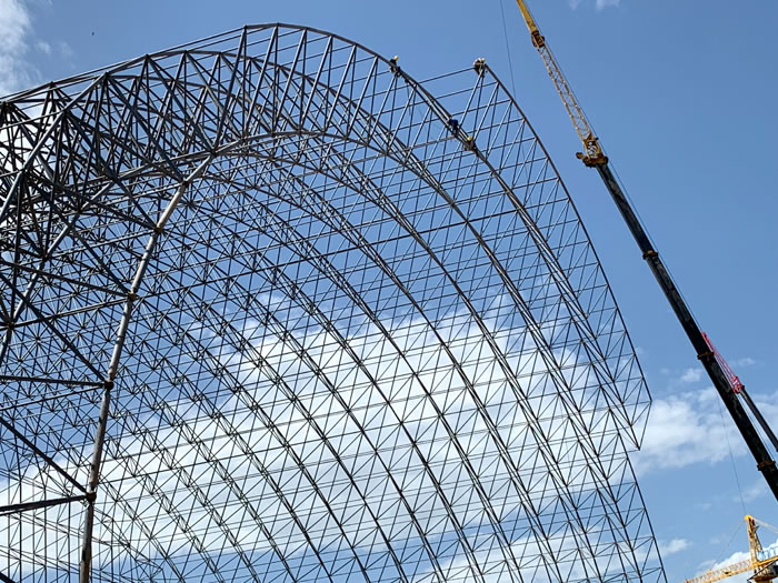 (2)网架加工前应对现场尺寸进行复测,确认无误后方可进行加工、安装;网架制作、运输、安装应遵守《空间网格结构技术规程》JGJ7-2010、《钢网架西青螺栓球节点》JG/T 10-2009、《钢网架西青螺栓球节点用高强度螺栓》 GB/T 16939-2016、《西青钢结构西青工程西青施工规范》 GB50755-2012、《西青钢结构西青工程施工质量验收标准》 GB50205-2020。